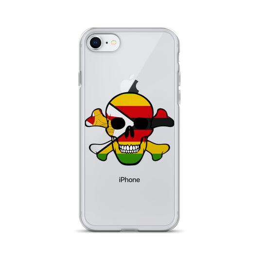 Clear Case for iPhone® with the Flag of Zimbabwe in a Skull and Crossbones design!