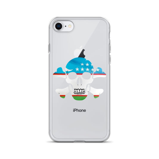 Clear Case for iPhone® with the Flag of Uzbekistan in a Skull and Crossbones design!