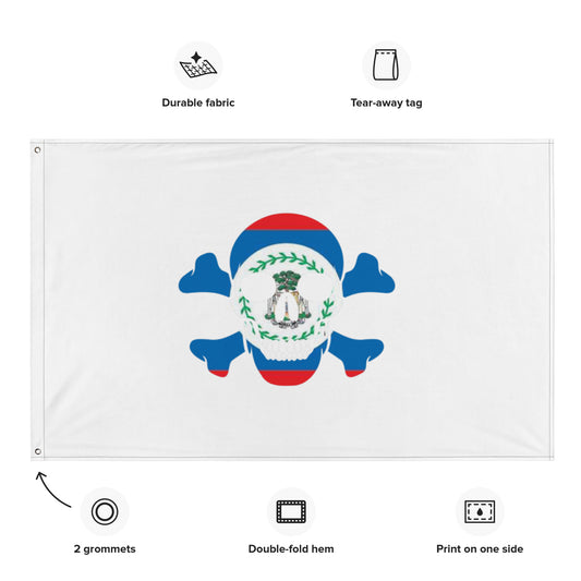 The Flag of Belize in a Skull and Crossbones design that you can fly at home or at the game!