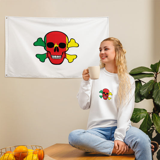 The Flag of Cameroon in a Skull and Crossbones design that you can fly at home or at the game!