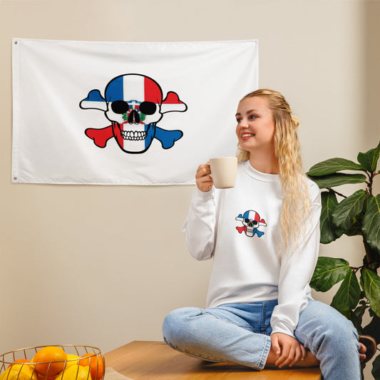 The Flag of The Dominican Republic in a Skull and Crossbones design you can fly at home or at the game!