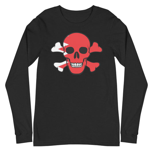 Unisex Long Sleeve Tee with the Flag of Bahrain in a Skull and Crossbones design!