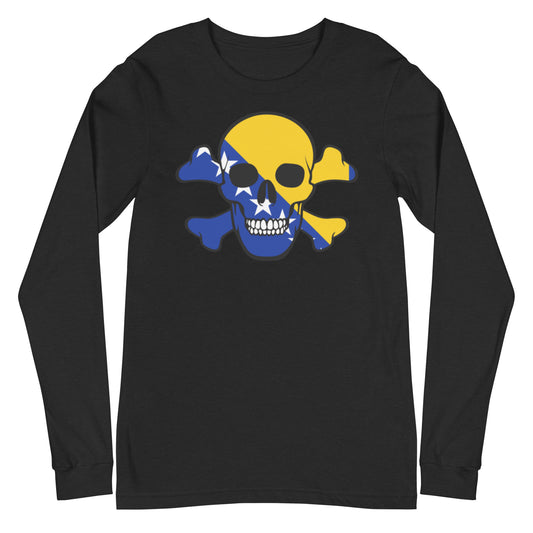 Unisex Long Sleeve Tee with Flag of Bosnia and Herzegovina in a Skull and Crossbones design!