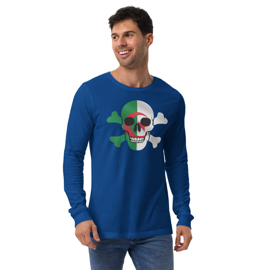 Unisex Long Sleeve Tee with the Flag of Algeria in a Skull and Crossbones design!