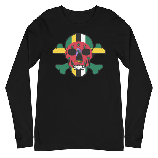 Unisex Long Sleeve Tee with the Flag of Dominica in a Skull and Crossbones design!