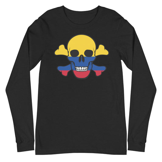 Unisex Long Sleeve Tee with the Flag of Colombia in a Skull and Crossbones design!