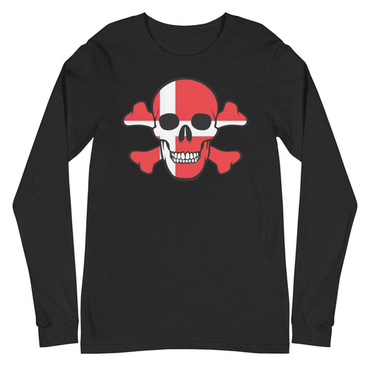 Unisex Long Sleeve Tee with the Flag of Denmark in a Skull and Crossbones design!