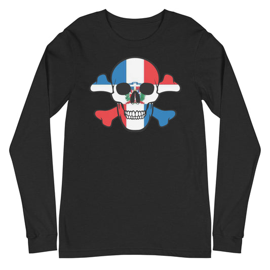Unisex Long Sleeve Tee with the Flag of Dominican Republic in a Skull and Crossbones design!