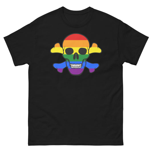 Unisex classic tee with the Pride flag in a Skull and Crossbones design!