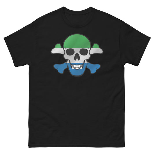 Unisex classic tee with the Flag of Sierra Leon in a Skull and Crossbones design!