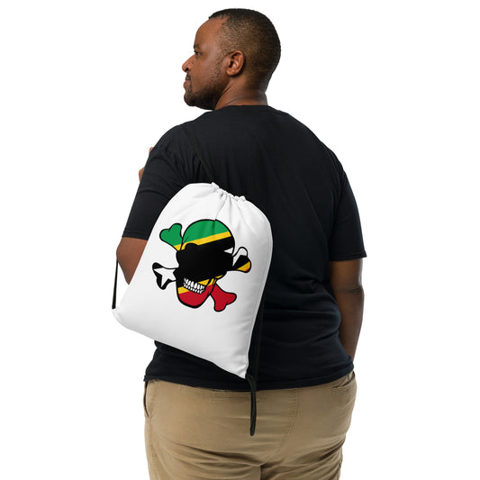 Drawstring bag with the Flag of Saint Kitts and Nevis in a Skull and Crossbones design!