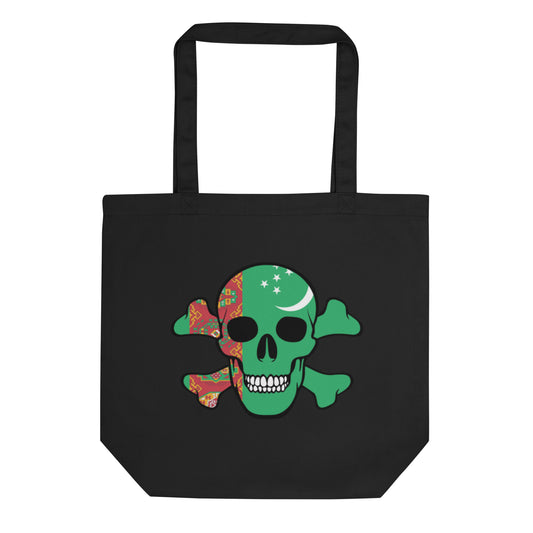 Eco Tote Bag with the Flag of Turkmenistan in a Skull and Crossbones design!