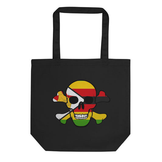 Eco Tote Bag with the Flag of Zimbabwe in a Skull and Crossbones design!