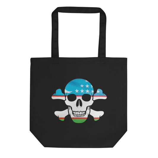 Eco Tote Bag with the Flag of Uzbekistan in a Skull and Crossbones design!