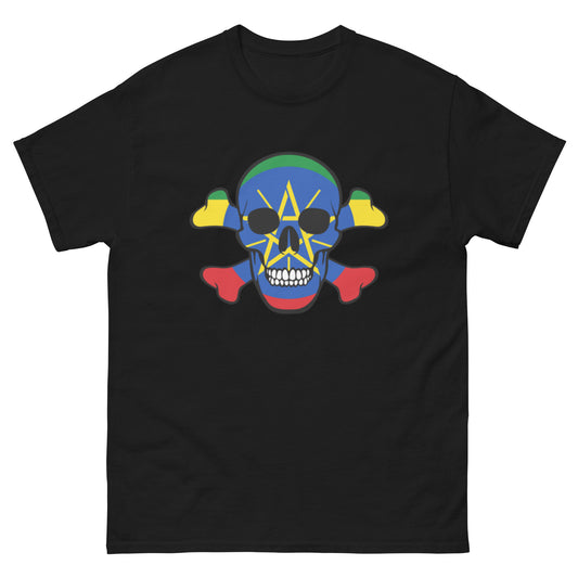 Unisex classic tee with the Flag of Ethiopia in a Skull and Crossbones design!