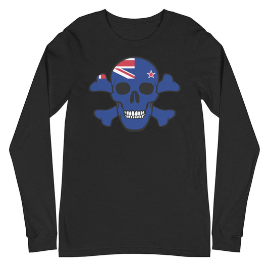 Unisex Long Sleeve Tee with the Flag of New Zealand in a Skull and Crossbones design!