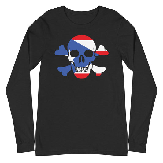 Unisex Long Sleeve Tee with the Flag of Puerto Rico in a Skull and Crossbones design!