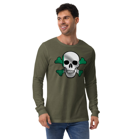Unisex Long Sleeve Tee with the Flag of Nigeria in a Skull and Crossbones design!