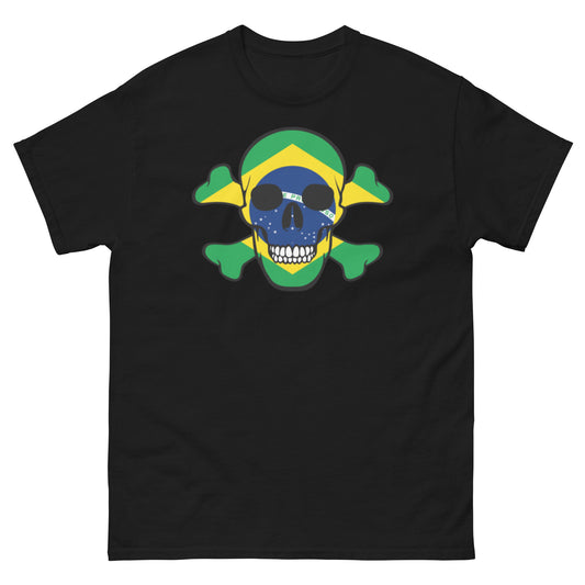 Unisex classic tee with the Flag of Brazil in a Skull and Crossbones design!
