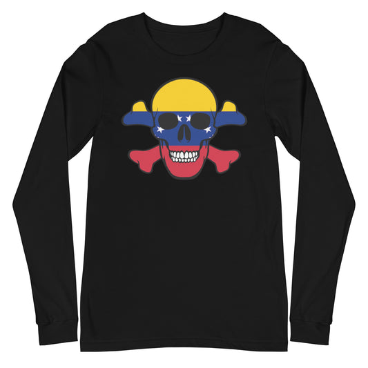 Unisex Long Sleeve Tee with the Flag of Venezuela in a Skull and Crossbones design!