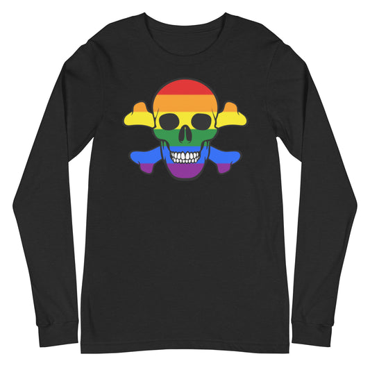 Unisex Long Sleeve Tee with the Pride flag in a Skull and Crossbones design!
