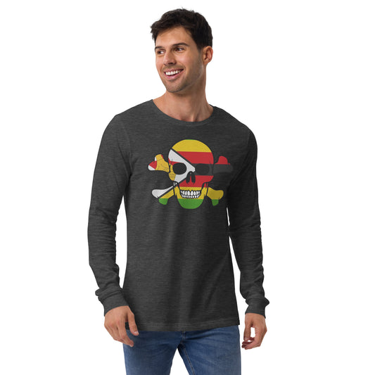 Unisex Long Sleeve Tee with the Flag of Zimbabwe in a Skull and Crossbones design!