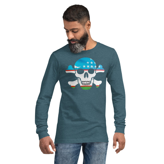 Unisex Long Sleeve Tee with the Flag of Uzbekistan in a Skull and Crossbones design!