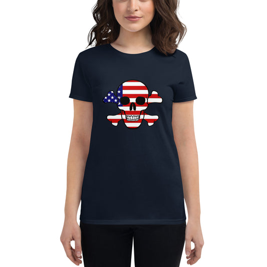 Women's short sleeve t-shirt United States Flag with Skull and Crossbones design!